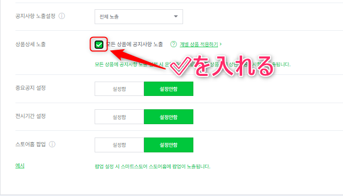 ※✅なしだと、「個々の商品を適用する」になり、個別に設定が必要です。(一時的な在庫切れ、出荷元の休暇などのシーンで活用)