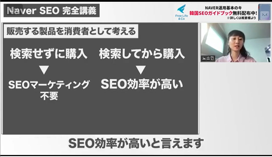 - Naverの思想: 「Naverのエコシステム内で生成されたコンテンツ」を優遇して上位表示する。