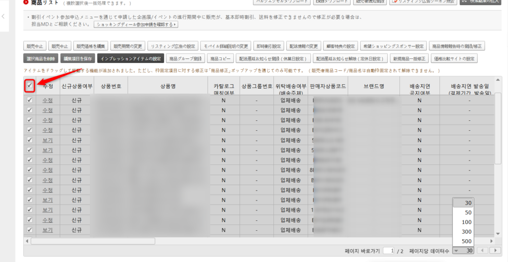 ④商品にチェックを入れます。一括でも何か1つでもOKです。