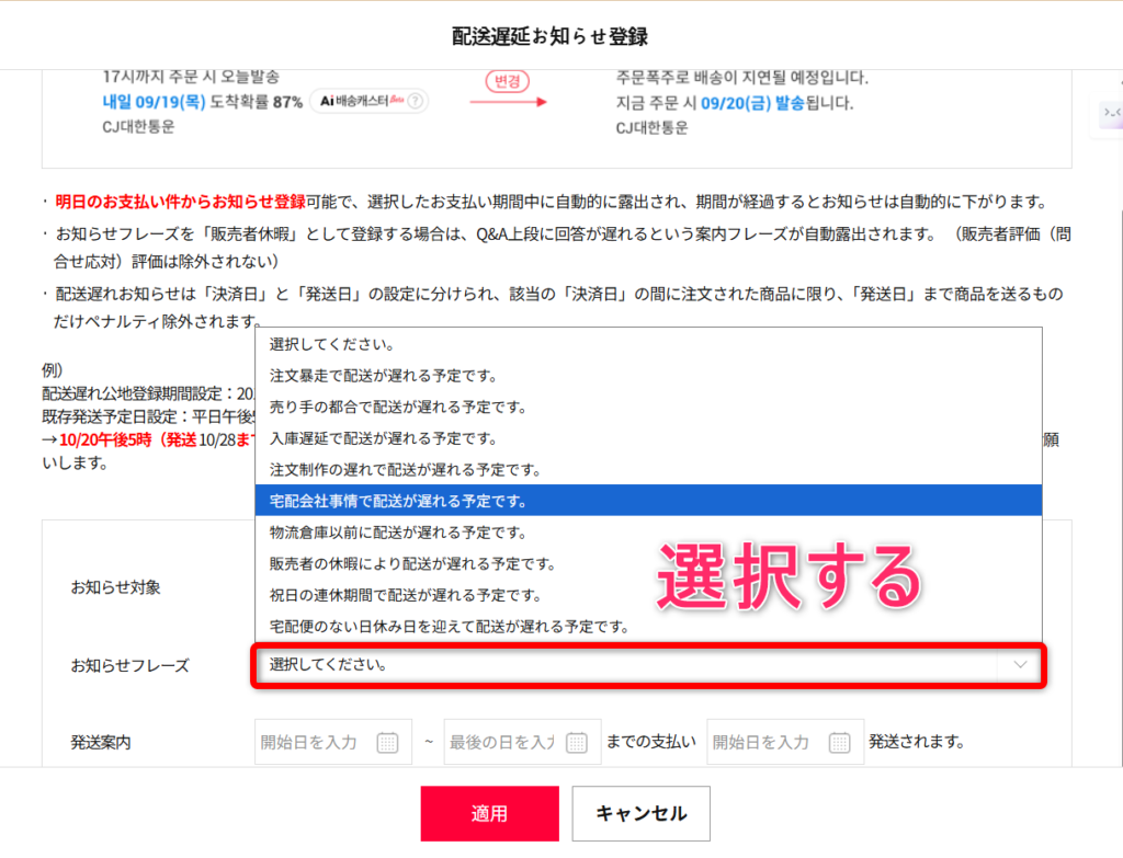 - 韓国輸出で配送遅延を連絡する方法が知りたい!