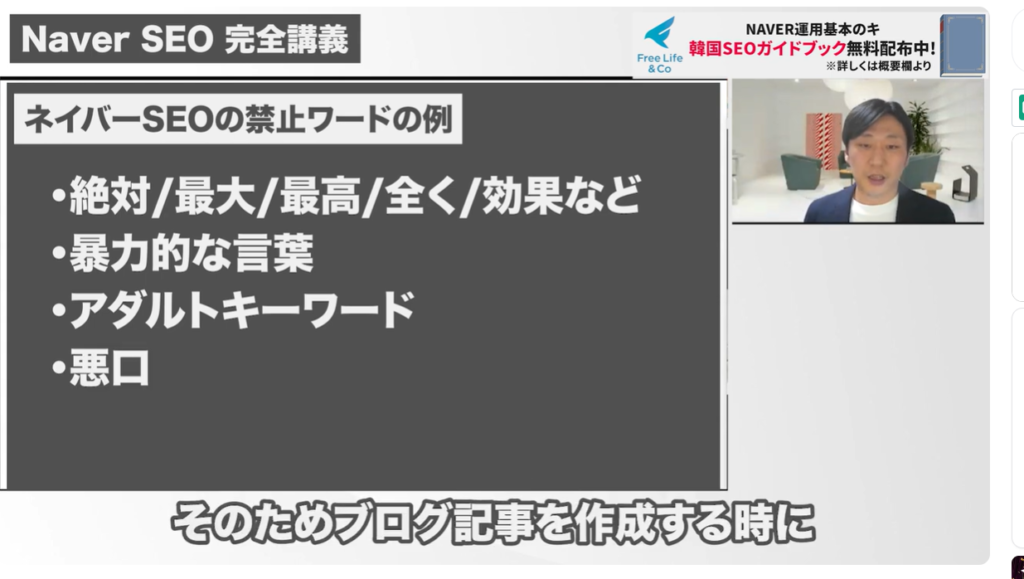 Naverのアルゴリズムは、過度な誇張表現・攻撃性・公序良俗に反する表現を嫌います 。