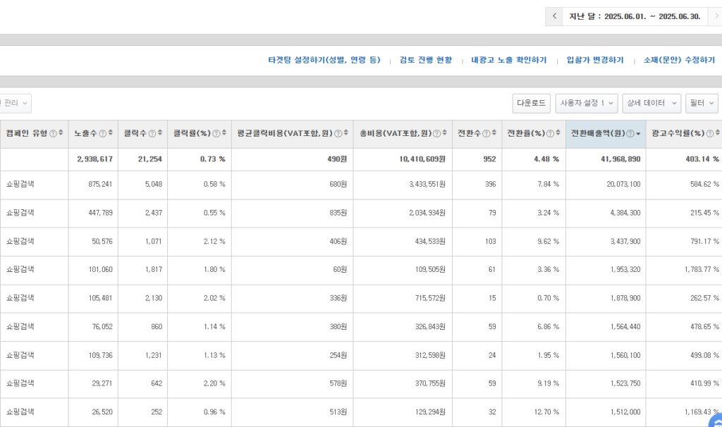 ・予算効率 – 307万ウォンの少額投資で高ROASを実現