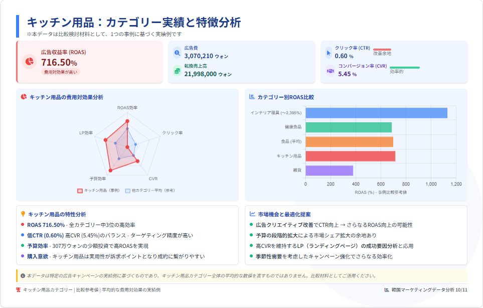 - キッチン:少額投資で高効率(307万→ROAS717%)