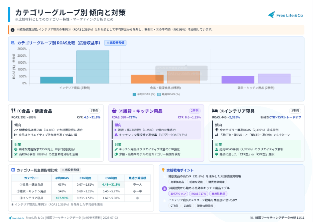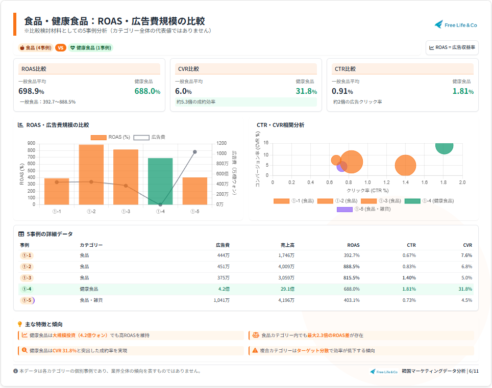 - 健康食品は高CVR(31.8%)で大規模投資に適合